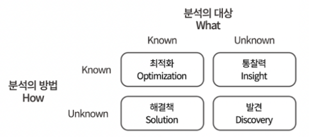 - ๋ฐ๊ฒฌ(Discovery): ๋ถ์ ๋์์ด ๋ฌด์์ธ์ง๋ ๋ชจ๋ฅด๊ณ ๊ทธ ๋ถ์ ๋ฐฉ๋ฒ๋ ๋ชจ๋ฆ